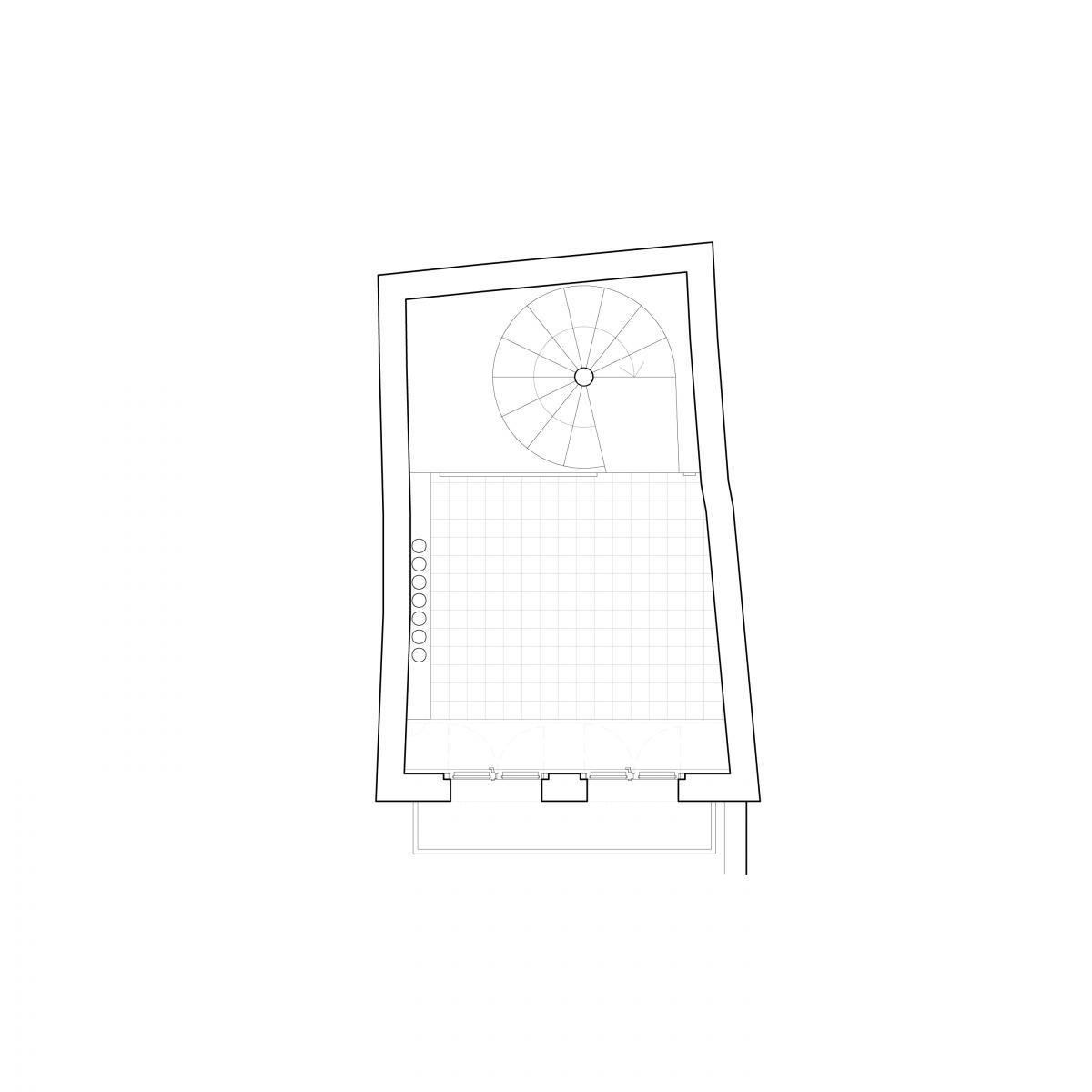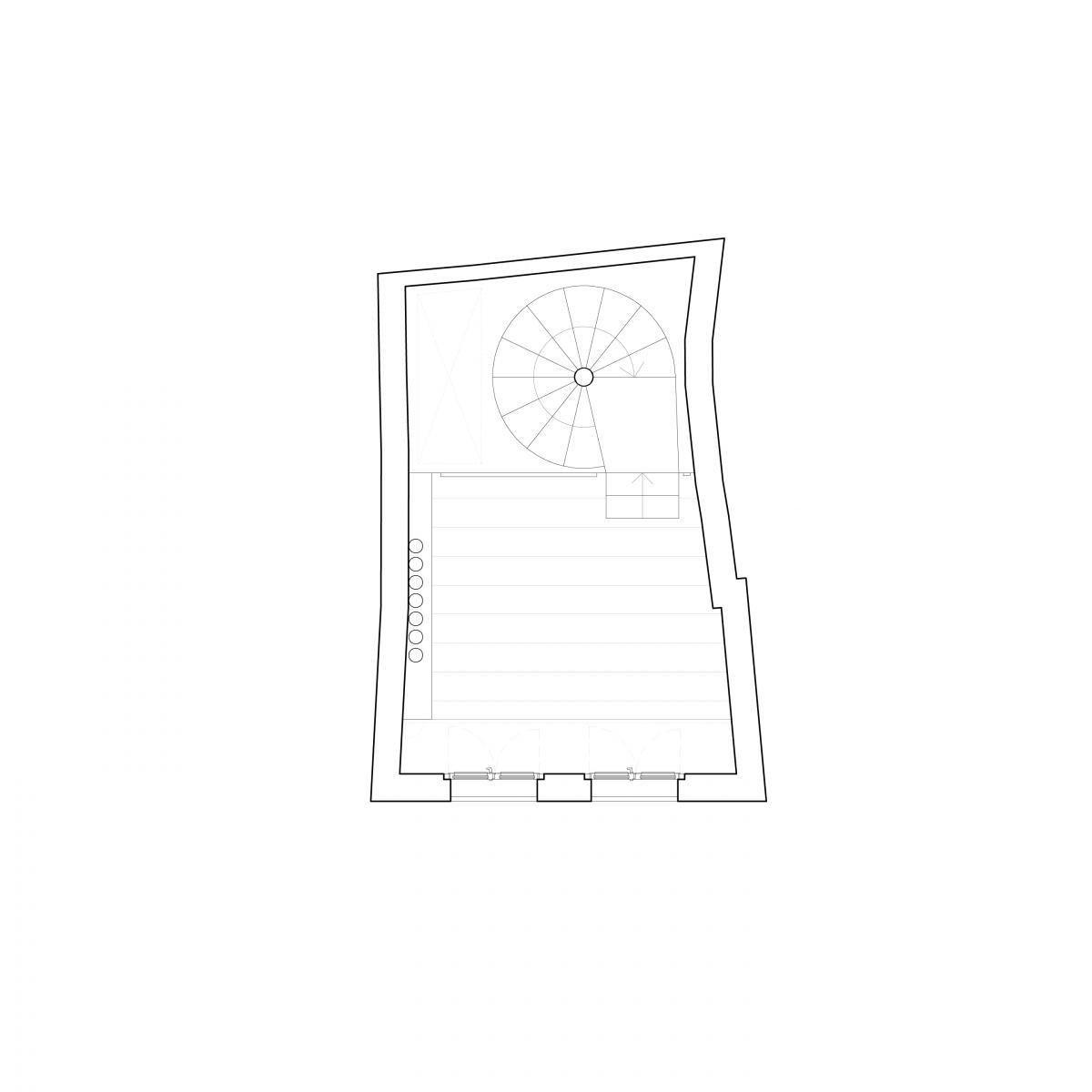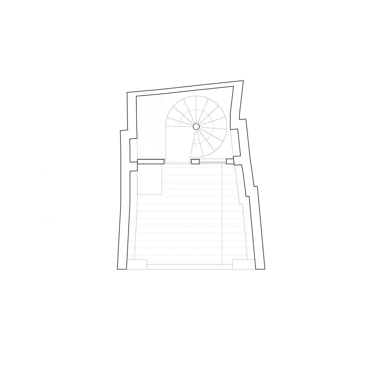 El proceso de obra, lento y complejo, al menos permitió tomar decisiones conforme la esencia de la finca se iba mostrando con los derribos. Así, una vez todos los forjados habían sido derruidos y el edificio se veía como un esbelto y alto prisma formado por muros con una composición completamente heterogénea de todo tipo de ladrillos y piedras dispuestos sin orden o composición aparente, la idea de dejar todos estos muros vistos se volvió conceptual: estas cuatro paredes de más de 15m de alto son un museo de la historia del edificio, donde cualquier rastro de la construcción (arcos, dinteles, huecos de los peldaños y las vigas), y del uso (restos de morteros, muebles, de premarcos o revestimientos) se dejarán sin alterar, expuestos en toda su crudeza. Los nuevos forjados (3 en total) serán láminas sujetas por nuevas vigas entre las medianeras, que no tocarán ninguna de las dos fachadas: hacia la fachada principal, una lámina de vidrio los separará de ésta; y hacia la fachada interior, el hueco de escalera será un vacío a 4 alturas que una todo el interior y muestre la sorprendente altura de un edificio tan esbelto. Así, el proyecto queda definido, restando definir los usos de cada planta y resolver los temas técnicos.