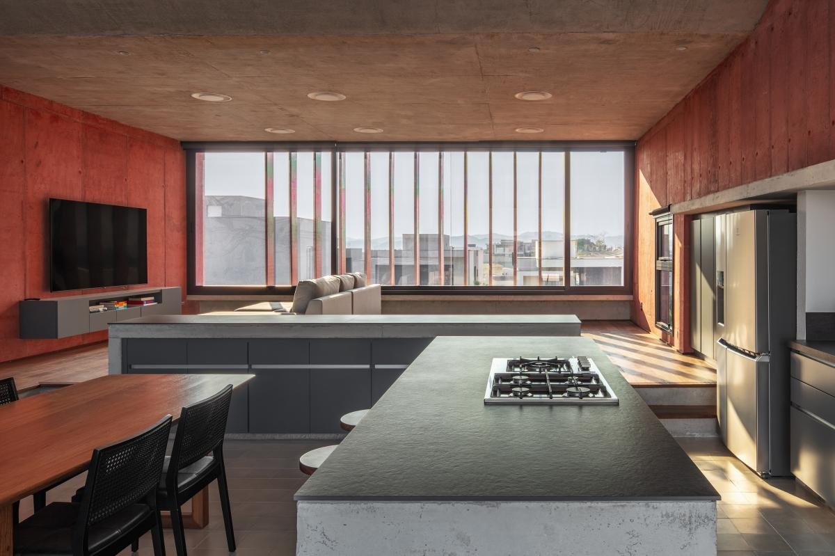 Esta estrategia también permitió que el programa más íntimo se ubicara en el nivel inferior, al nivel de la parte trasera de la casa y con acceso al jardín.