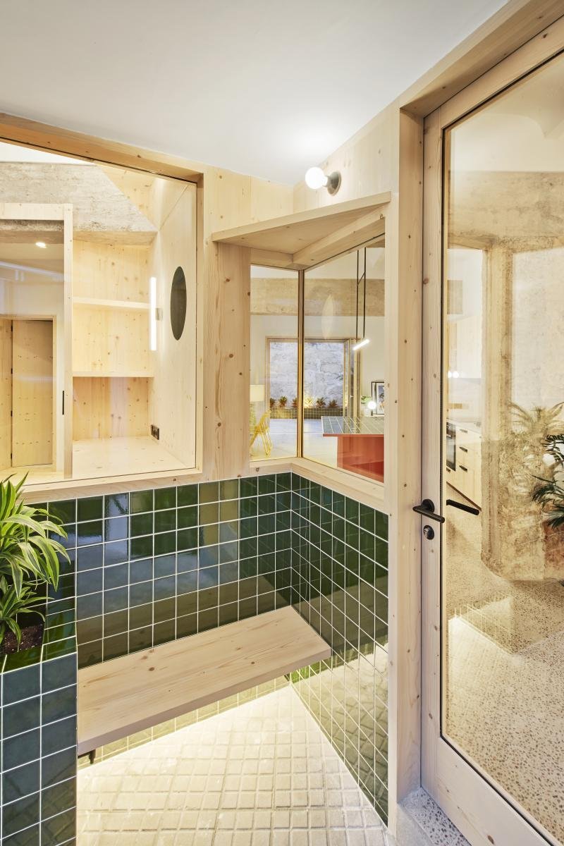 Palma Hideaway sirve de estudio/vivienda a una joven emprendedora que pasa la mayor parte del tiempo viajando por trabajo. Es el resultado de una exploración continua de como habitar locales en planta baja situados en tejidos densos urbanos. ( continuando el estudio realizado anteriormente en Raval Hideaway en Barcelona)