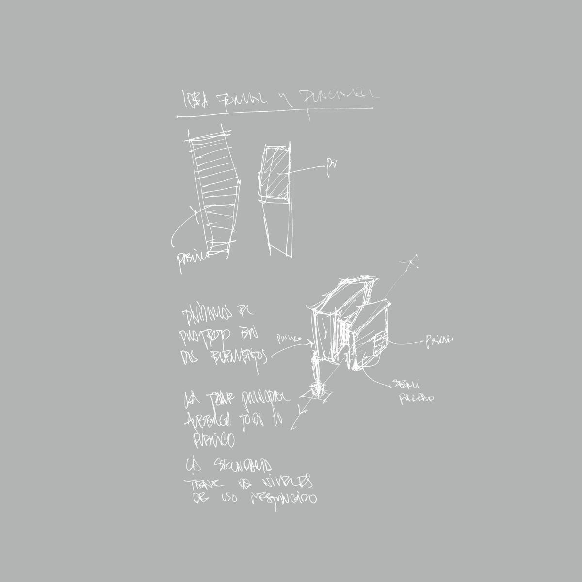 El nombre de la propuesta, Riss, que en alemán significa fisura, es la representación visual del principal gesto del edificio, una fisura que permite el paso de las personas a través del mismo.