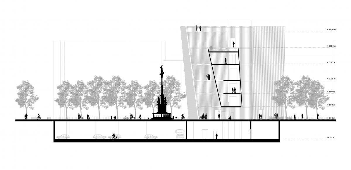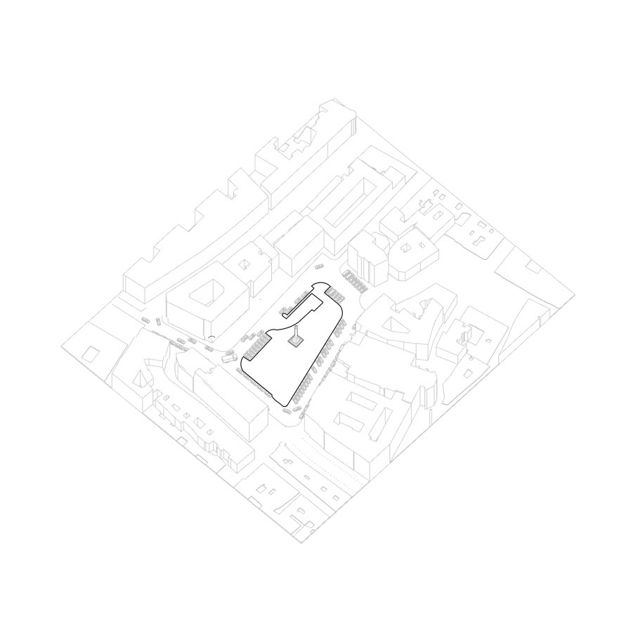 RISS, la nueva Escuela de Arte Contemporáneo de Viena, surge no sólo del resultado de analizar de manera funcional la distribución de espacios que nos pedía el programa, sino también de la situación actual del contexto en el que se encontraba el proyecto que a pesar de la importancia de la plaza, la misma reflejaba una imagen urbana degradada por la presencia de autos que bordean la plaza y que representan una barrera entre la conexión del ciudadano y el espacio público.